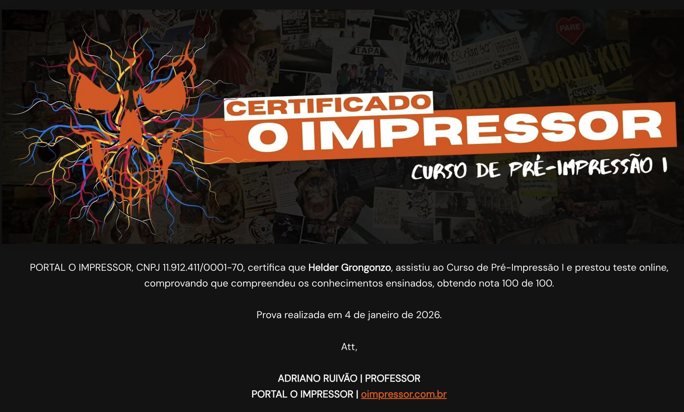 Se você chegou até aqui, provavelmente você é um impressor com tinta correndo nas veias. Mas, pra comprovar isso e obter um certificado para acrescentar no seu currículo, ainda tem mais uma etapa importante: fazer a nossa prova!